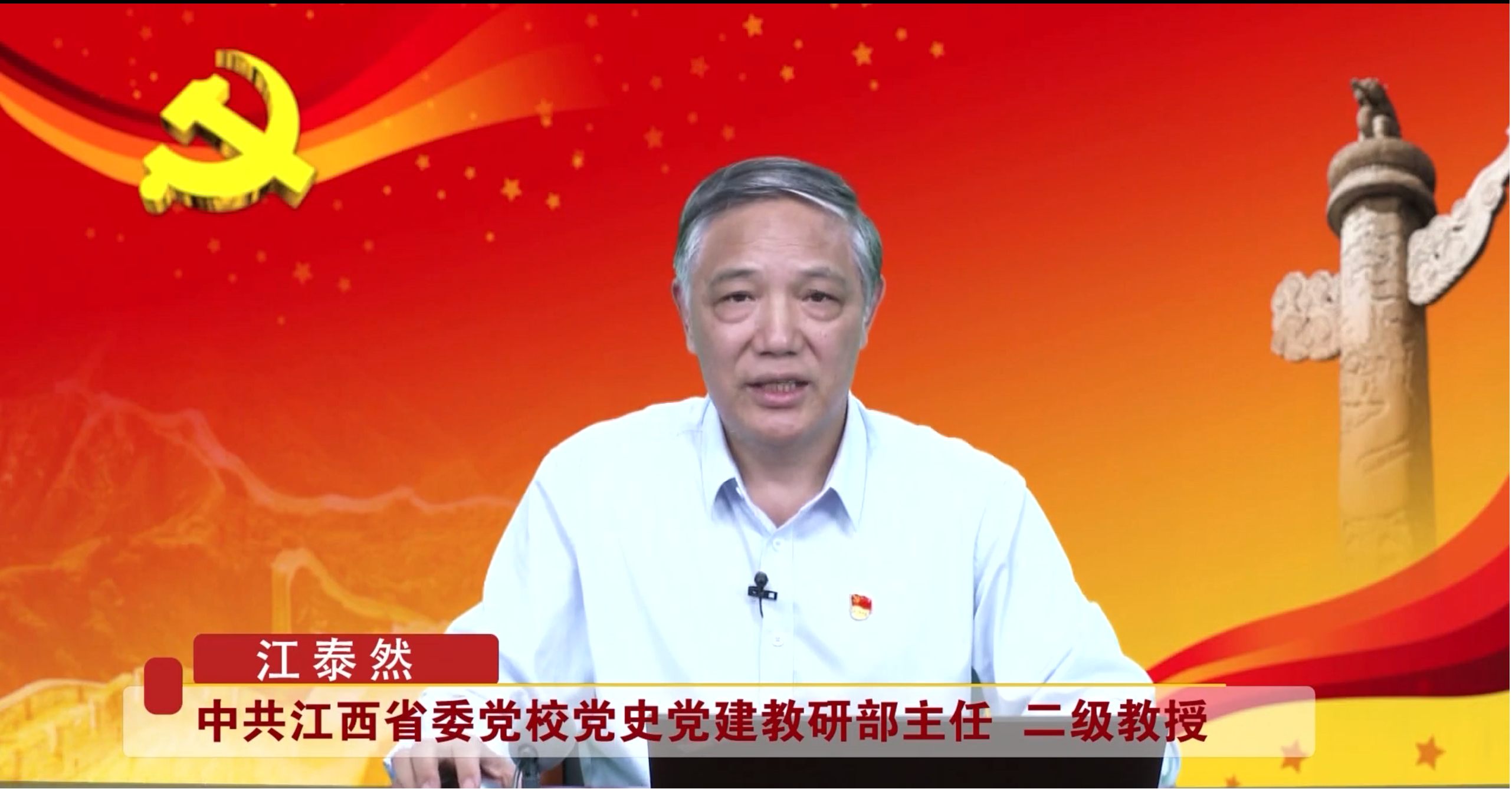 第一讲是由中共江西省委党校党史党建教研部主任、二级教授江泰然围绕“坚持不懈用习近平新时代中国特色社会主义思想凝心铸魂”这一主题展开,教育引导广大党员同志要以凝心铸魂筑牢根本,坚定对马克思主义的信仰、对中国特色社会主义的信念、对实现中华民族伟大复兴中国梦的信心,筑牢信仰之基、补足精神之钙、把稳思想之舵。