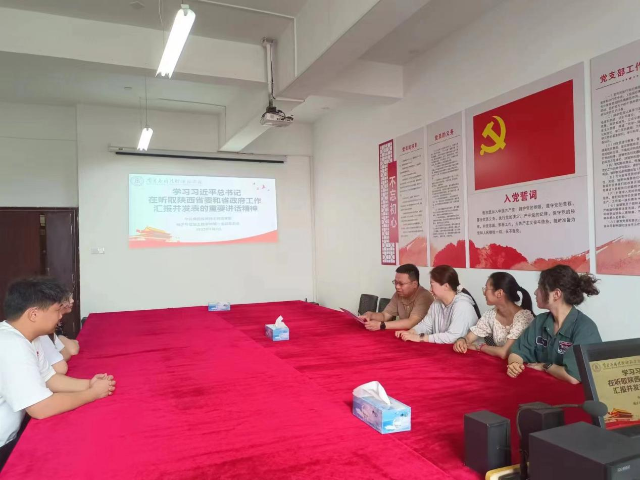 6月2日上午,beat365官方网站第一党支部和第二党支部分别在1407党员活动室召开会议,传达学习习近平总书记在听取陕西省委和省政府工作汇报时的重要讲话精神,研究贯彻落实措施。