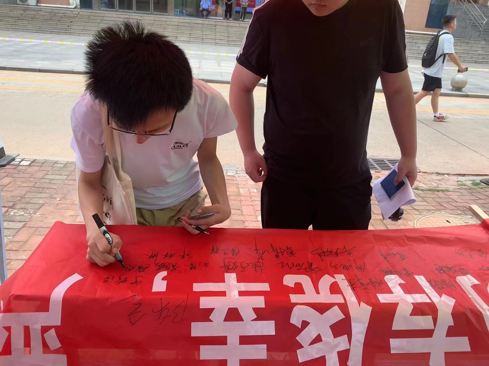 期末考试将近,为树立优良学风,加强考风考纪,营造良好的考试氛围。beat365官方网站于6月23日在教学楼门前停车场开展了“勿存侥幸,严禁作弊,诚信考试,从我做起”主题签名活动。