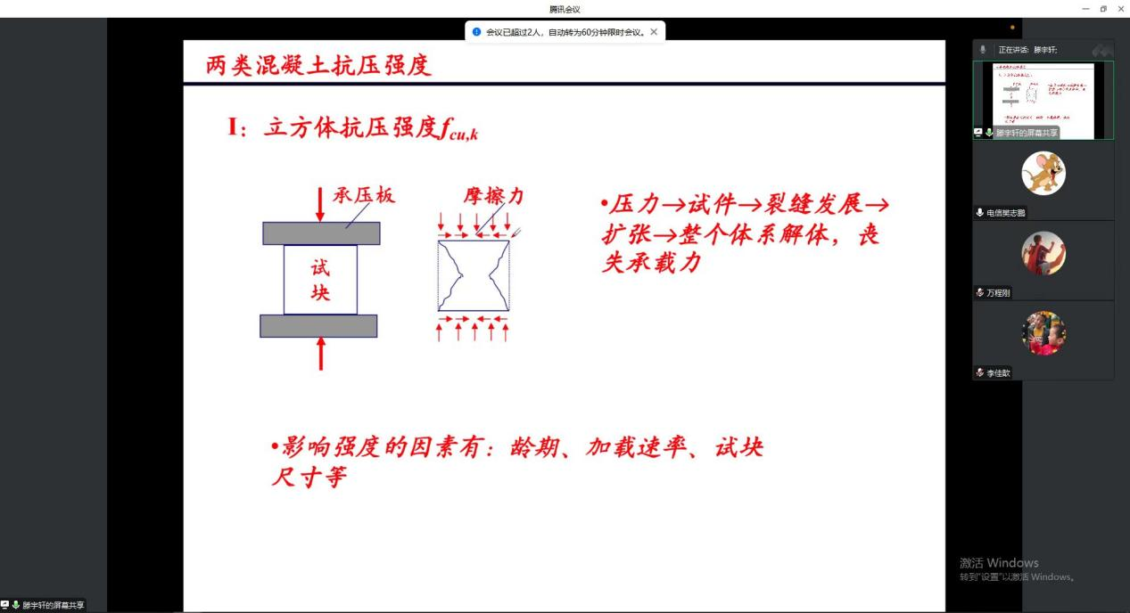 本次面试分为自我介绍、试讲、答辩三个环节。首先,应聘者就教育、工作经历等情况进行了简要介绍。试讲课程滕宇轩选取了《混凝土结构设计原理》中混凝土材料强度。在20分钟的试讲环节中,通过丰富的配图并运用数理统计原理进行推导,深入浅出,理论联系实践,过程生动,效果良好。试讲结束,评委组就教学思路、教学内容、课件制作等方面对应聘者进行了点评,并提出改进意见。