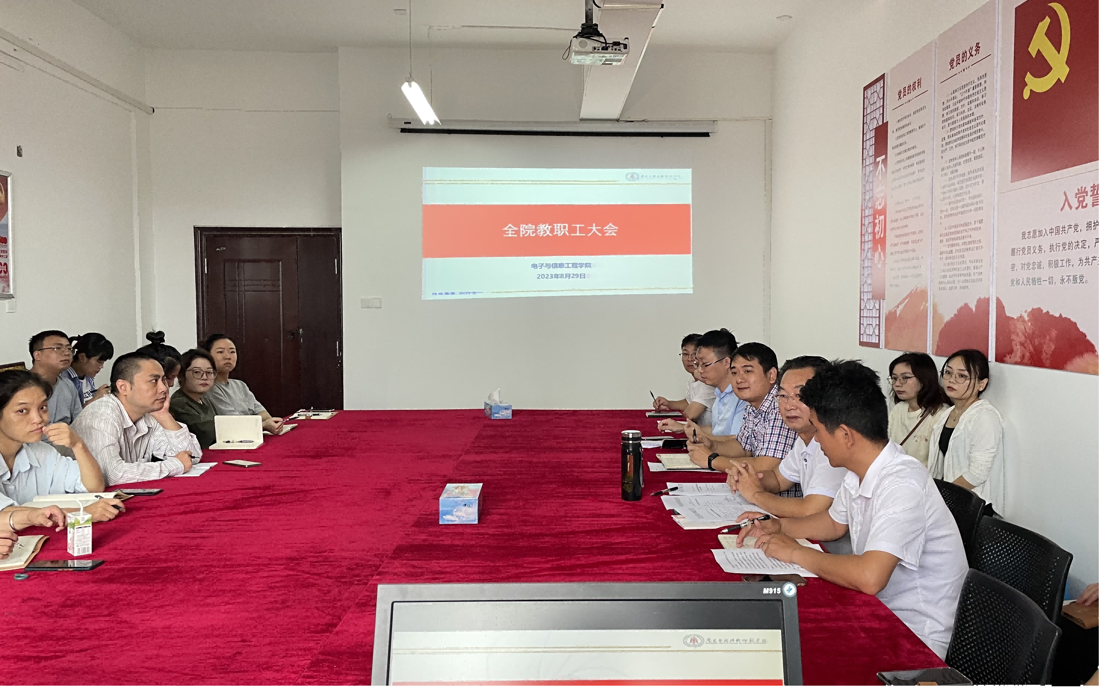 8月29日上午,电子与信息工程学院在学院会议室1407召开全院教职工大会,全体教职工参加了会议,会议由校长助理兼院长黄国清主持。