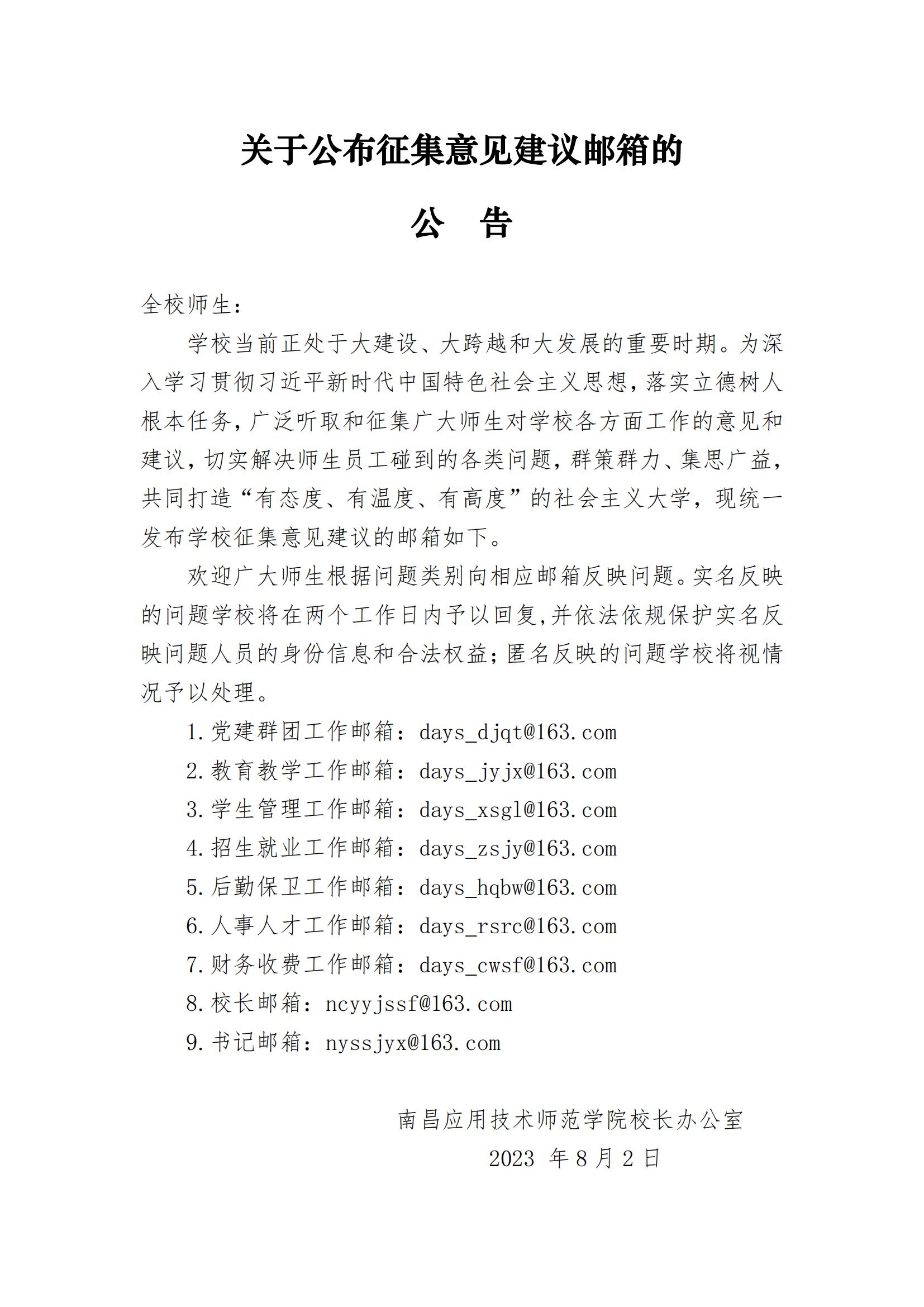 首页栏目 学院新闻 学院公告 学生工作 您现在的位置是:首页 > 首页栏目 > 学院公告 关于公布征集意见建议邮箱的公告 管理员2023-08-304853 上一篇 beat365官方网站关于报送学术委员会委员的公示 下一篇 关于拟将李亚琳等7位同志转为正式党员的公示