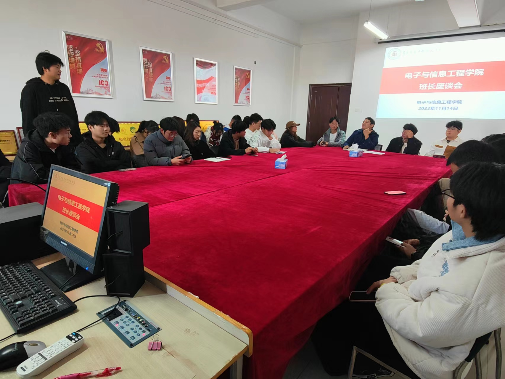 在认真听取班长们发言后,江建华就部分共性疑难问题,与大家深入探讨交流,并提出,希望各班之间加强交流、互相借鉴,增强班委团队凝聚力和工作执行力,积极营造班级优良学风和班风,将班级建设成和谐有爱、共同进步的大家庭。并表示希望班长们牢记竞选的初衷,积极承担作为班长的责任,在工作中要提高自己的工作水平,充分调动其他的班委积极性。与此同时,班长自身也要平衡好学习和工作的关系,以更加饱满的热情来开展班级工作。