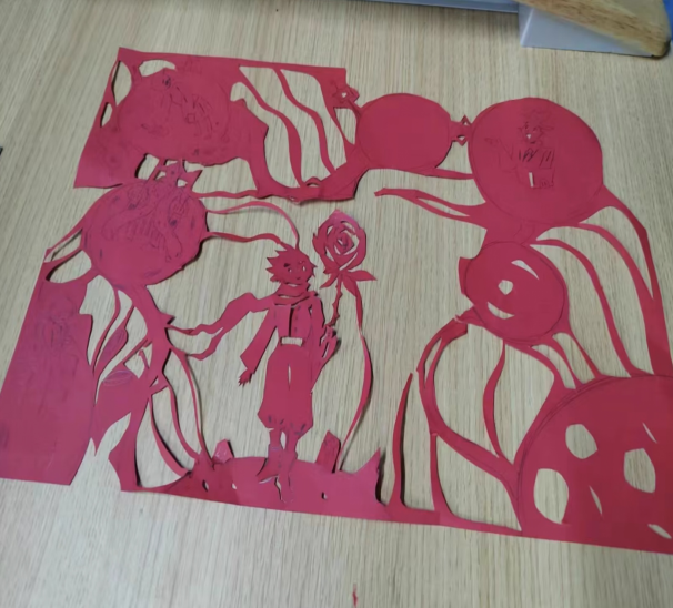 剪纸是我国民间艺术的瑰宝,是最具吉祥喜庆色彩和深受大众喜爱的一种艺术形式,所以活动初期宣传为一个礼拜,大家都踊跃参加,经过评选,共三张剪纸作品获得一致好评。这些剪纸中的每一个纹样,每一幅构图都不是孤立存在的,它就像历史文化长河中的一叶小舟,可能负载着他们对中国文化的热爱,以及对待活动的认真态度。同学们用一把剪刀,剪出了记忆里的映射,剪出了峥嵘岁月,剪出了辉煌诗篇,在党史学习教育中汲取前进力量,用一颗红心感念祖国、践行初心。