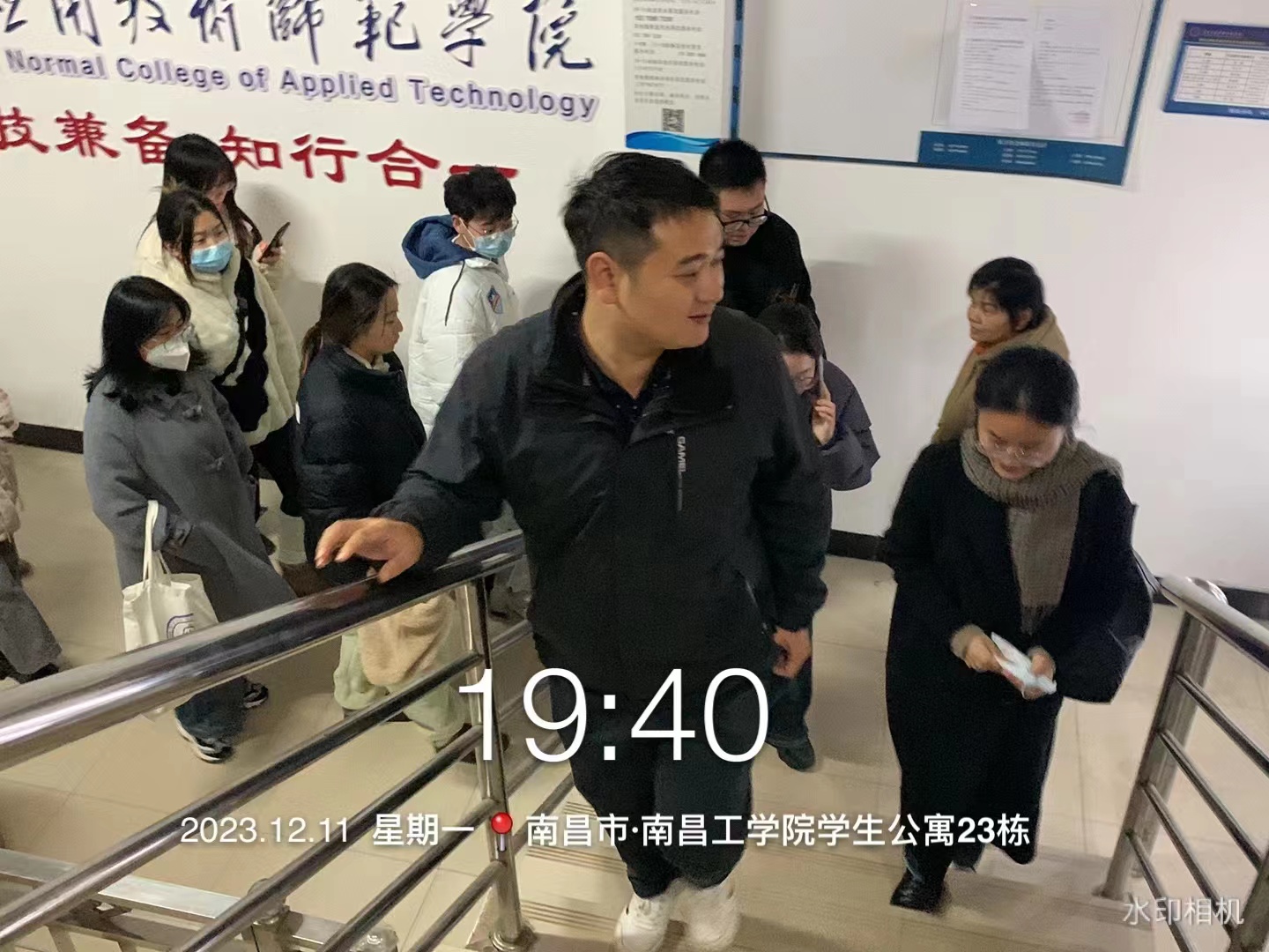 全面营造2023年学校党员大会平安和谐的召开环境,12月11日晚上七点半,beat365官方网站党总支书记带领全体辅导员走访学生宿舍,对相关宿舍成员的政治表现、学习情况、生活作风、卫生纪律和心理状况等方面进行全面了解,切实解决学生急难愁盼问题。