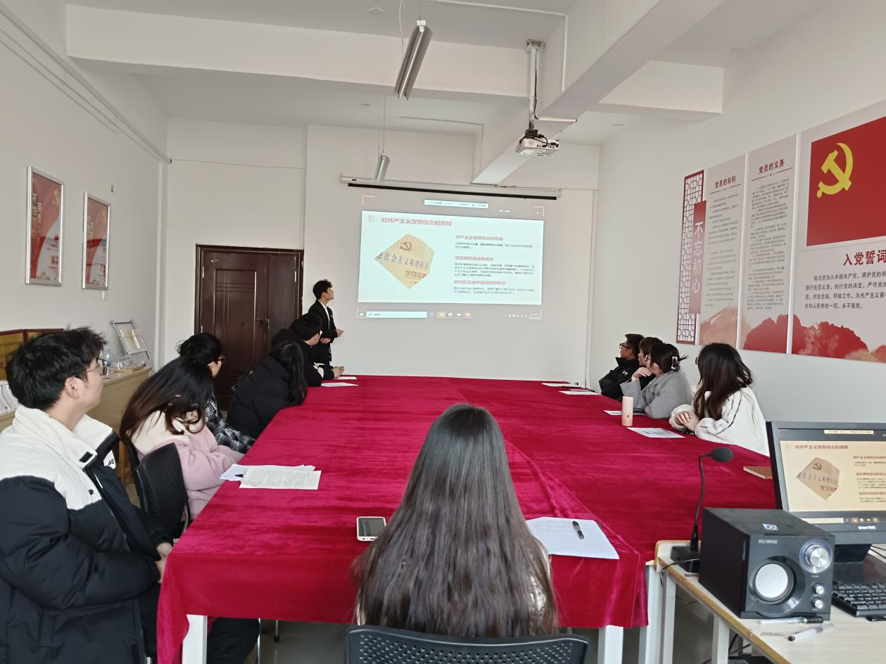 为进一步加强党员队伍建设,增强党员队伍的生机与活力,beat365官方网站第二党支部于12月28日在1407党员活动室召开了杨佳升等六名预备党员转正大会,本次会议由第二党支部书记程明珠同志主持,全体学生党员参加本次会议。