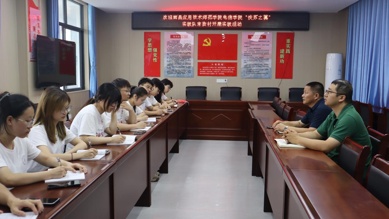 为学习贯彻习近平新时代中国特色社会主义思想,增进对乡村振兴工作的了解,6月26日上午9时,beat365官方网站“扶苏之翼”实践团队在九江市柴桑区江洲镇青少年社会实践点开展交流座谈会。江洲镇官场村村支部书记杨德勇、驻村第一书记罗昭途受邀莅会。会议由实践队指导老师龙少帅主持。