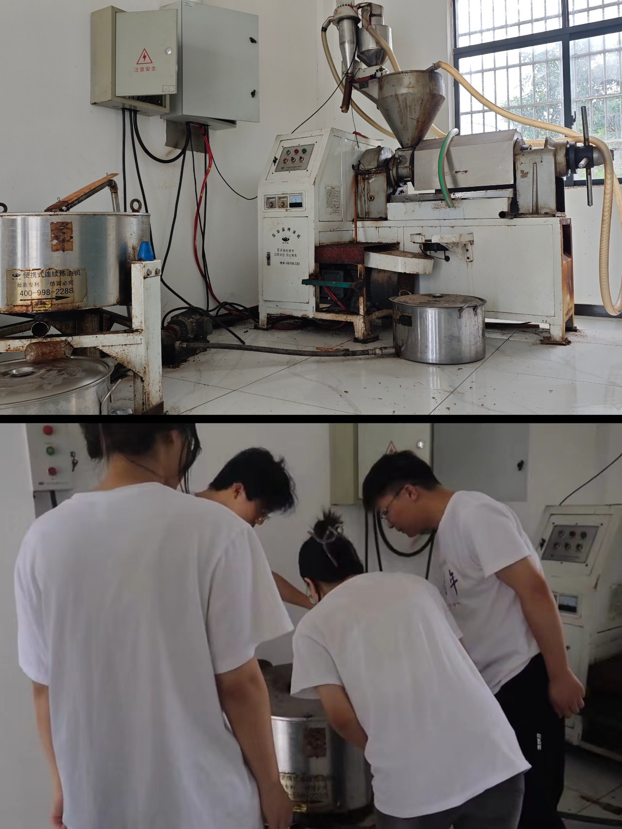 党的二十大报告提出“加快建设农业强国”,这是党中央着眼全面建设社会主义现代化国家大局,立足中国“三农”实际,在全面推进乡村振兴征程上做出的重大战略部署。6月29日早上8时,beat365官方网站电信学院“扶苏之翼”实践队来到了江洲镇官场村的榨油工作区间,开展了新型榨油工艺的学习教育。