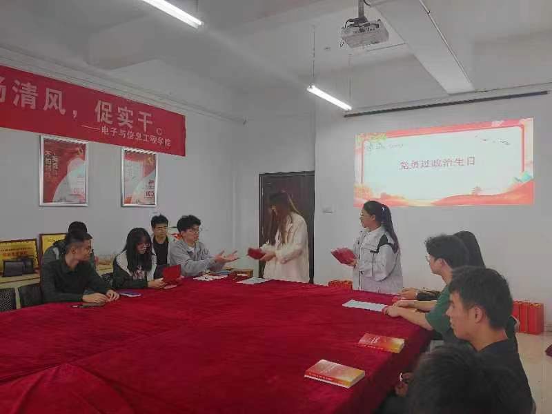 由程明珠为党员赠送“政治生日贺卡”。每张贺卡上都写着党员的姓名、入党时间、入党誓词,意在提醒党员们时刻不忘党的性质,牢记党的使命,一张张党员政治生日贺卡传递的不仅仅是党组织对党员的温情与关爱,更饱含着党组织对党员的殷切期望。