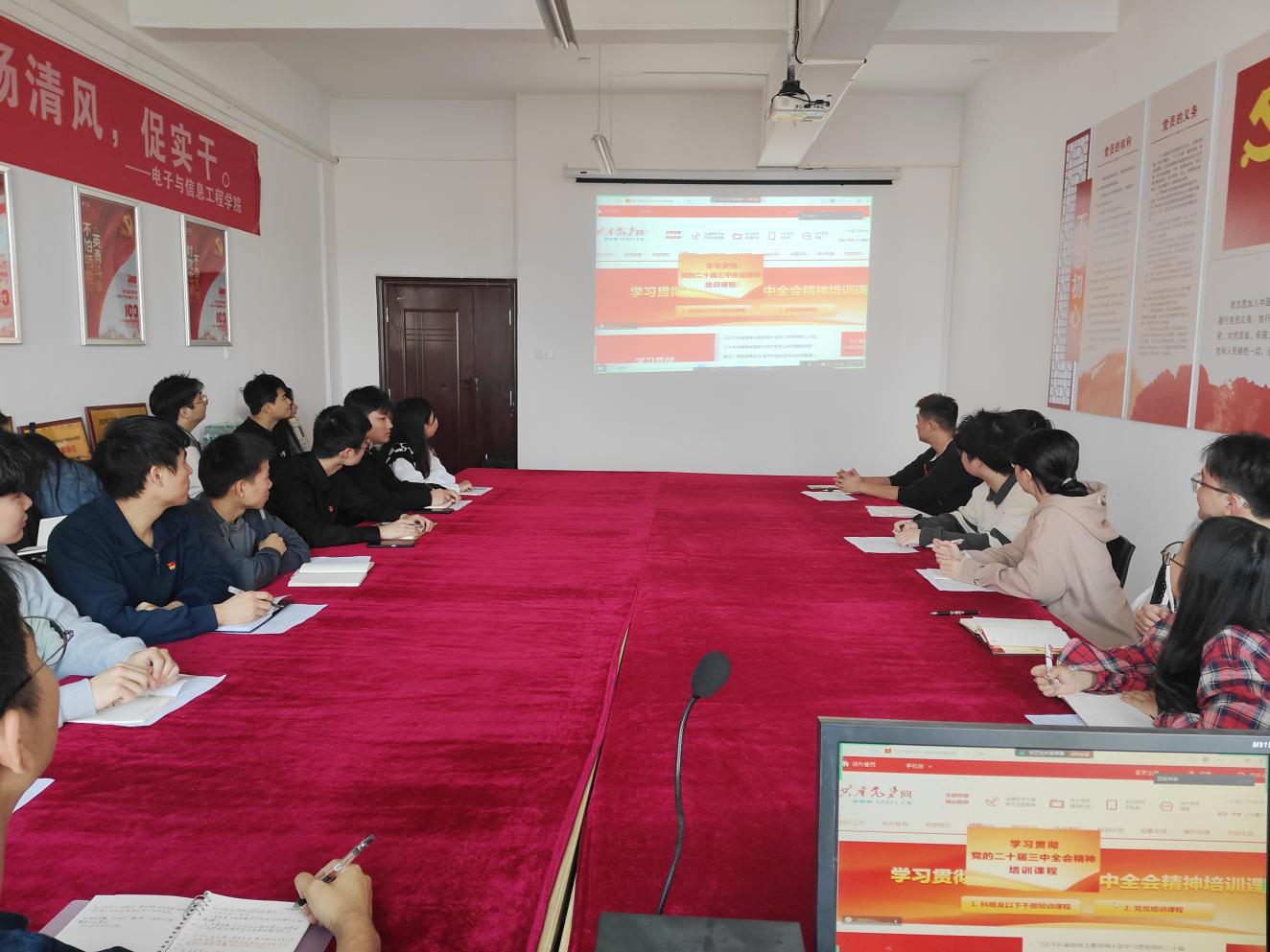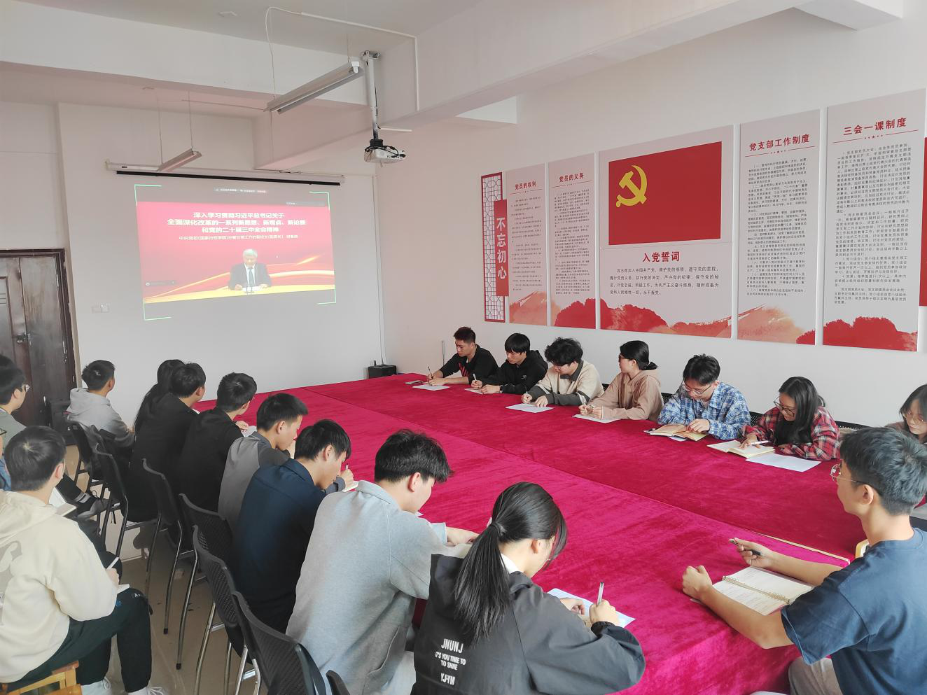 为深入学习宣传贯彻党的二十届三中全会精神,引导广大学生党员干部把思想和行动统一到全会精神上来,把力量凝聚到全会确定的各项任务上来。11月5日下午,beat365官方网站第二党支部组织召开“学习贯彻党的二十届三中全会精神” 集中学习研讨会。研讨会由党支部书记程明珠主持,支部全体党员参加。