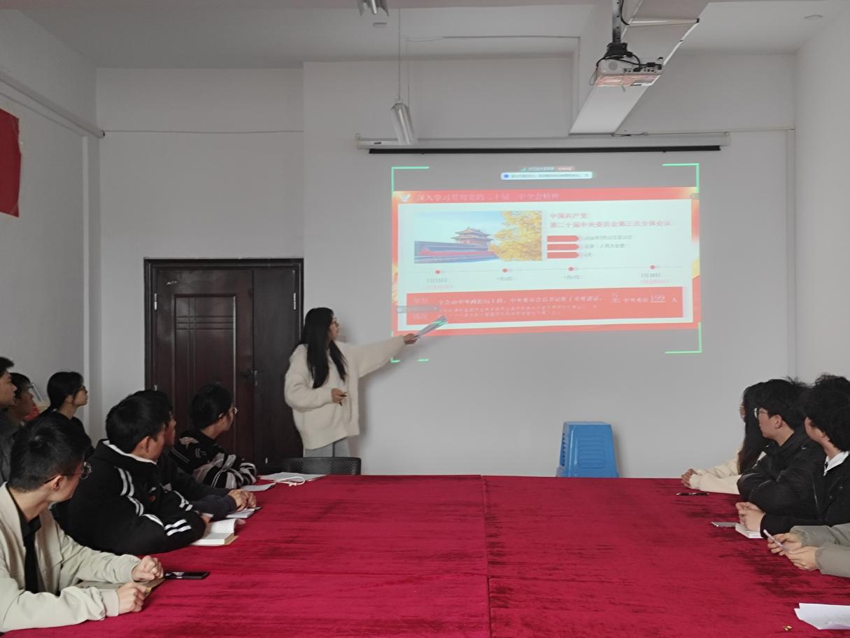 为深入学习贯彻党的二十届三中全会精神,引领党员进一步深入学习和理解全面深化改革的战略部署转化为推进中国式现代化的强大力量,12月6日,学院第二党支部书记程明珠为全体党员讲授了一堂以“深入学习贯彻党的二十届三中全会精神”为主题的专题党课。