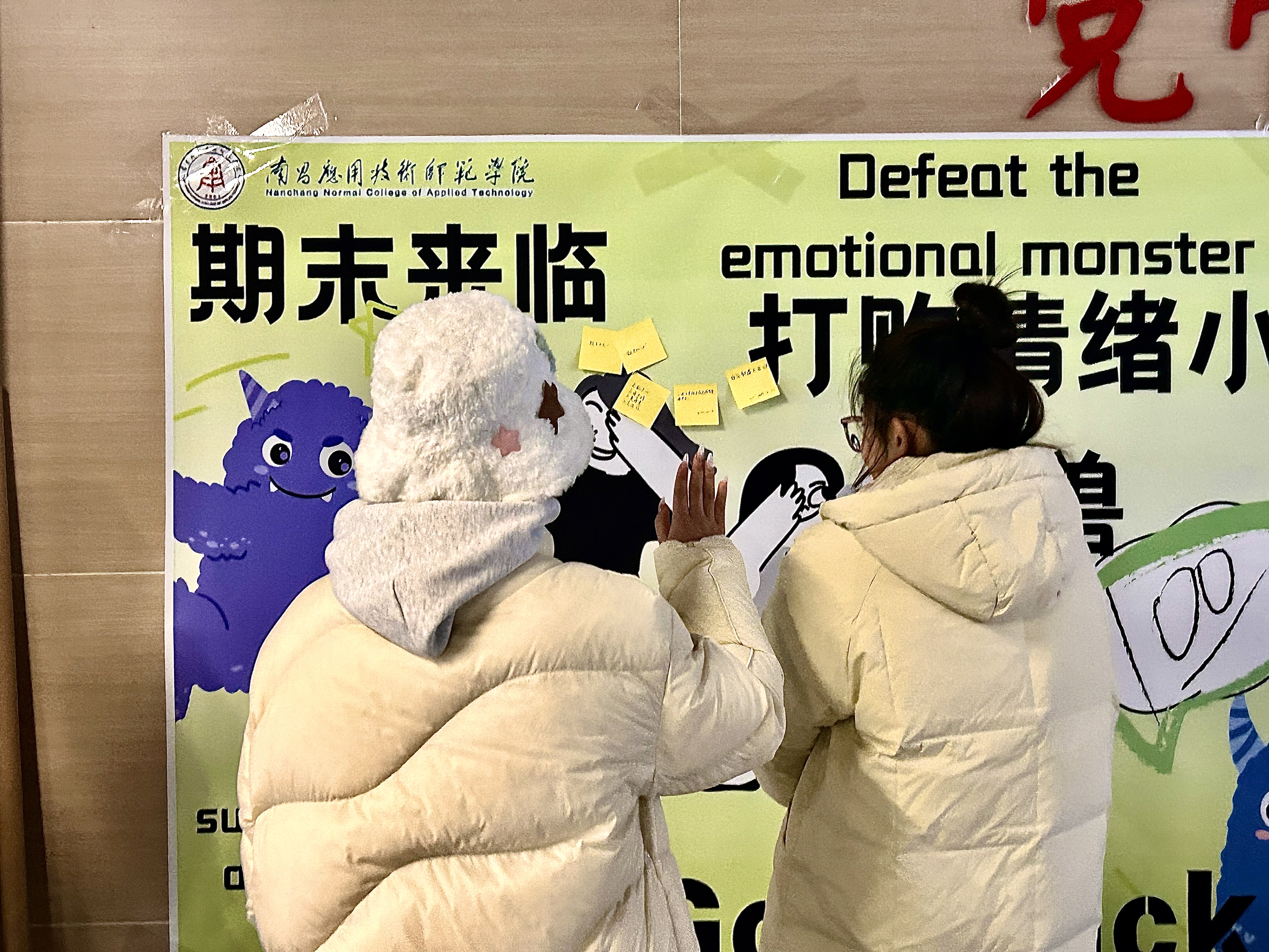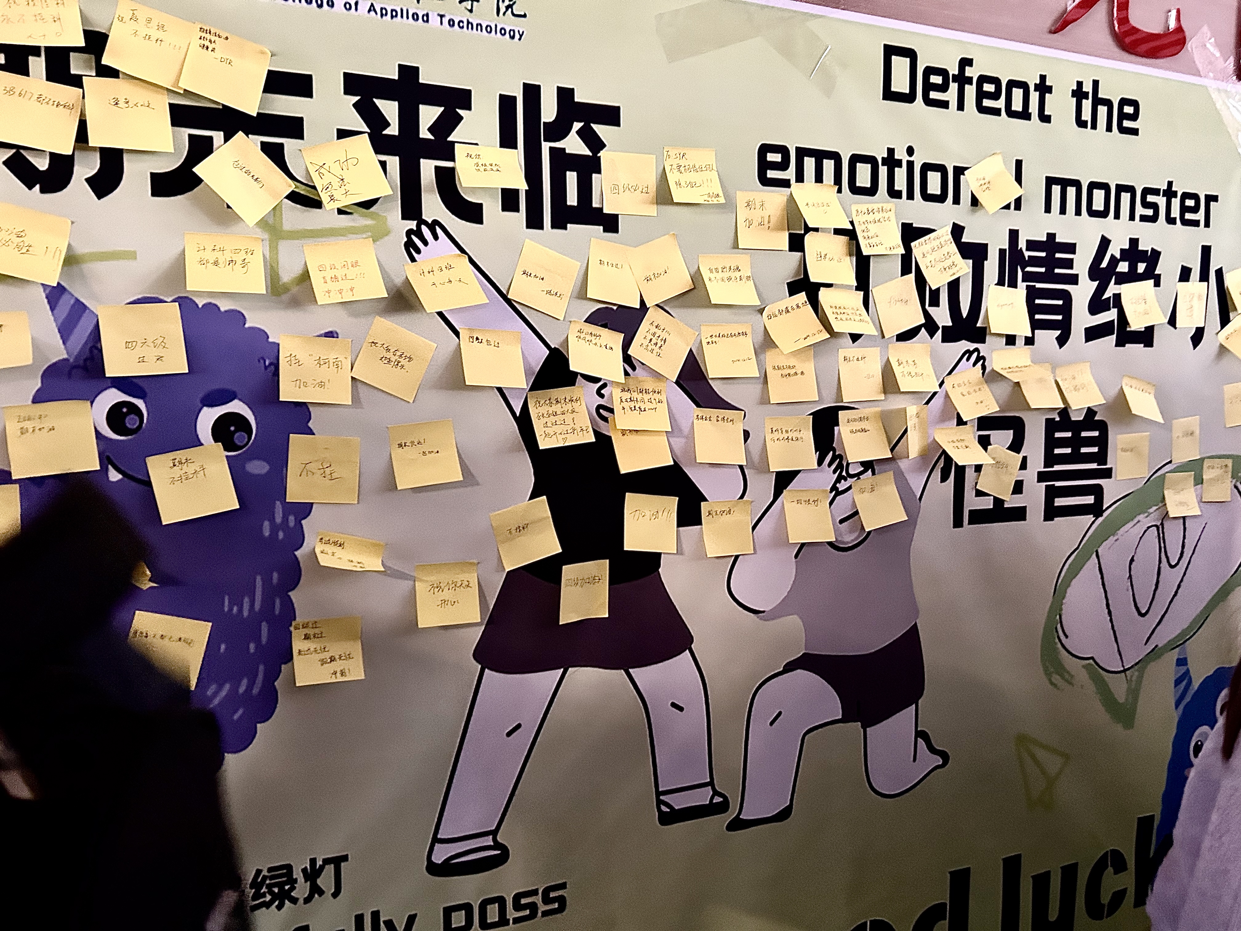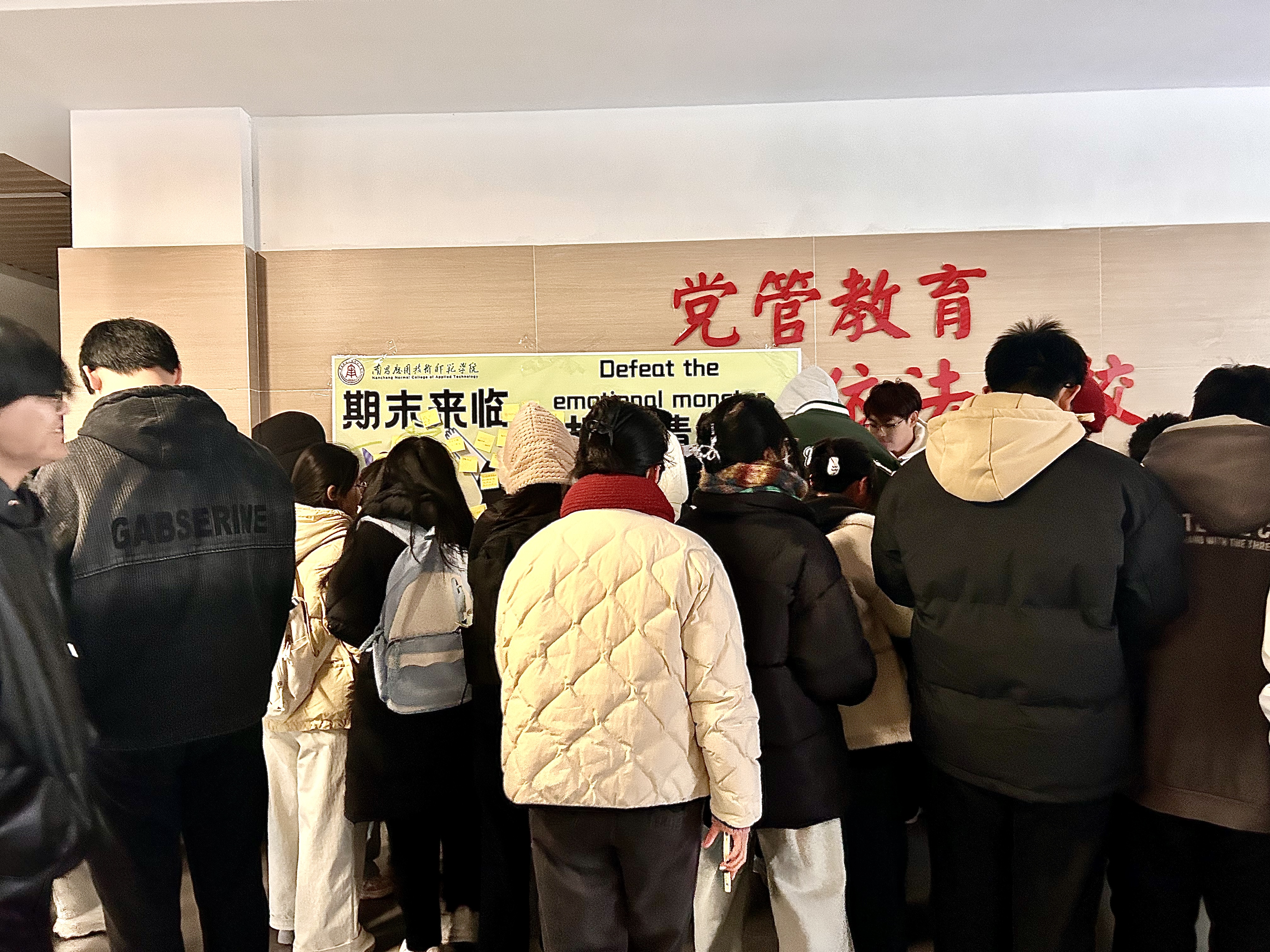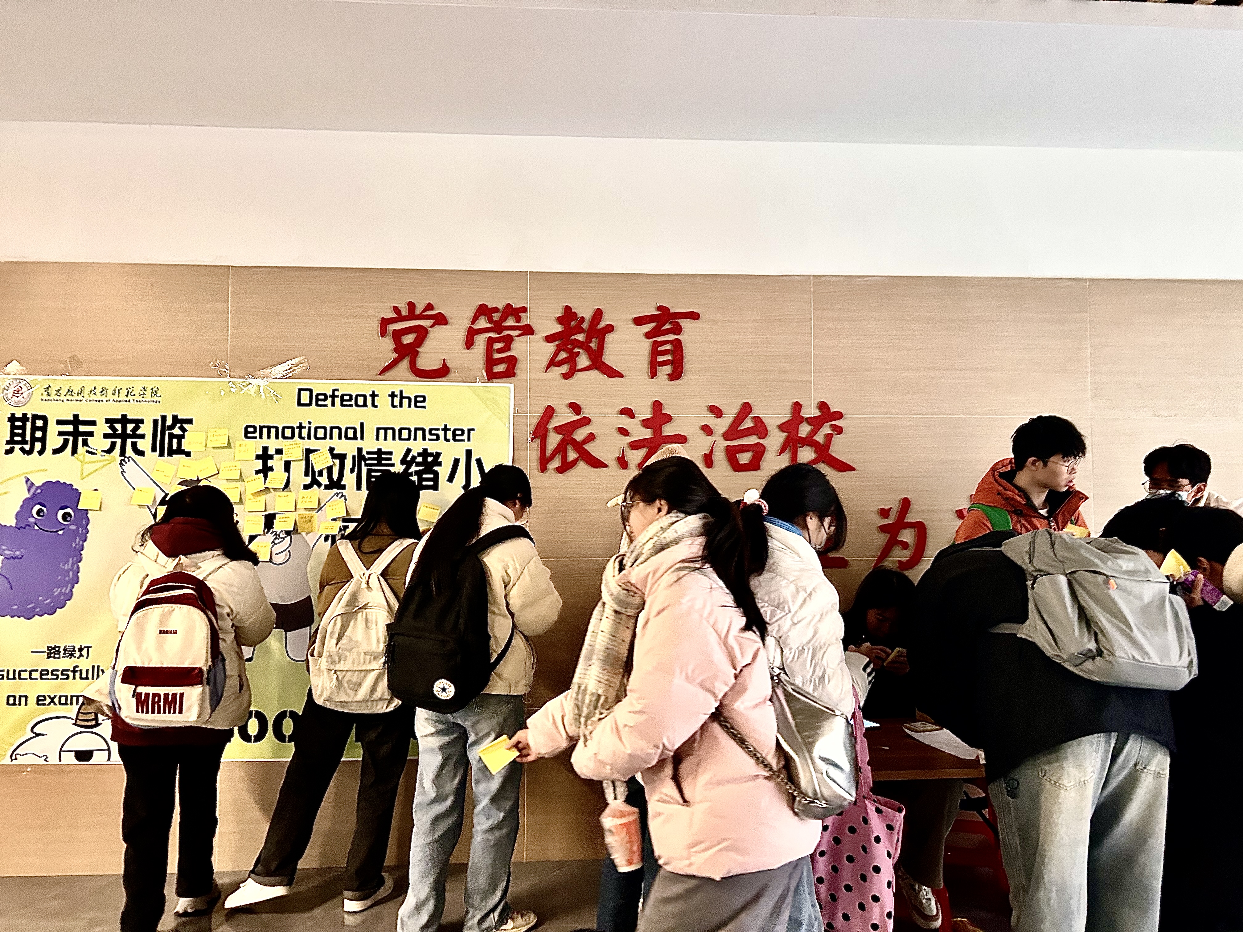 活动现场布置得温馨而充满创意,一张巨大的彩色击掌海报墙成为了整场活动的亮点。参与活动的同学们纷纷来到海报墙前,认真地写下自己的祝福语或鼓励语,这些话语充满了正能量,字里行间流露出对同学们的关爱与鼓励。