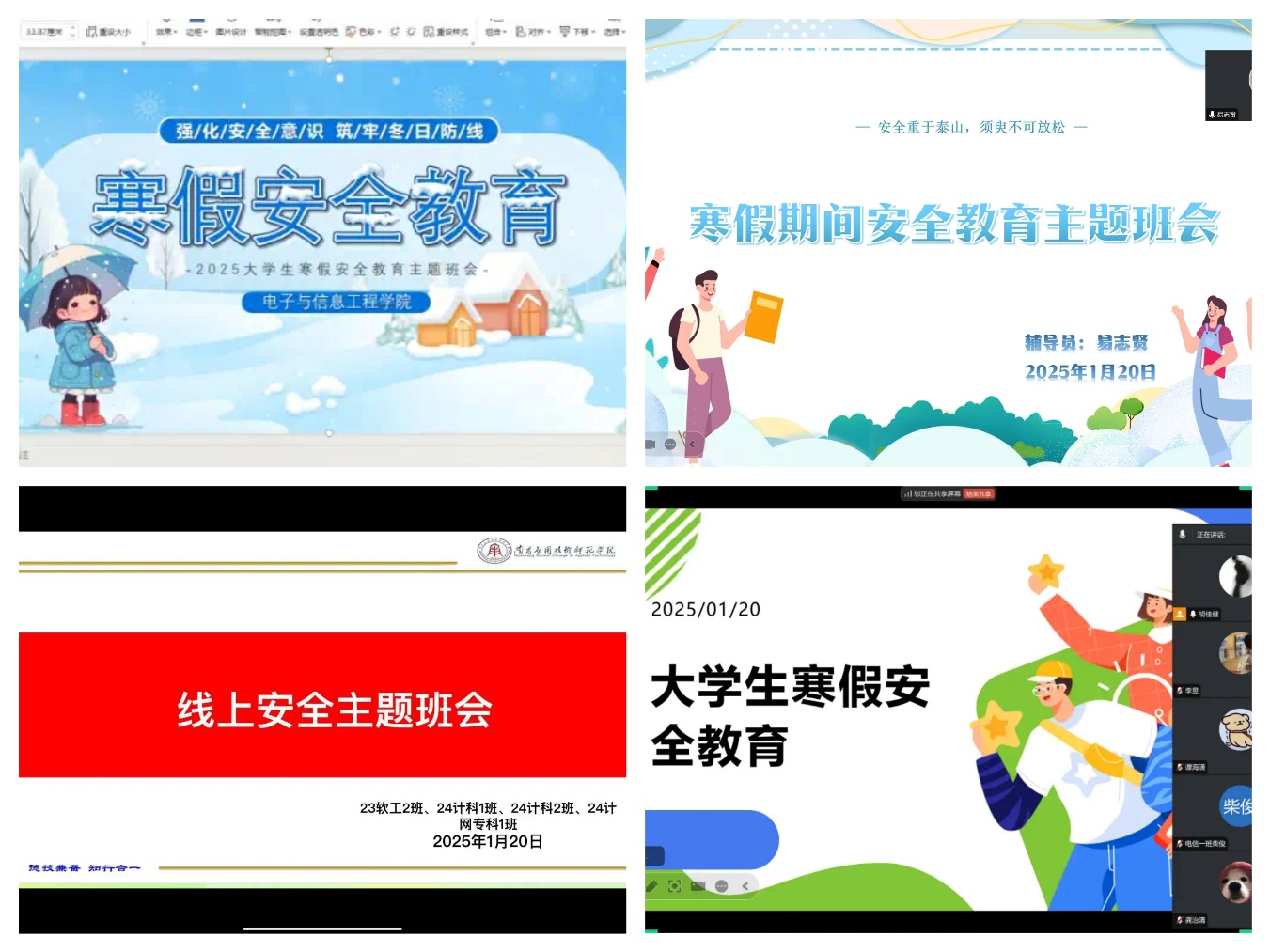 为进一步加强假期安全教育工作,提高学生的安全防范意识,时刻紧绷安全之弦,确保同学们度过一个平安、愉快的寒假。beat365官方网站于2025年1月20日组织各班开展了寒假安全教育主题班会。