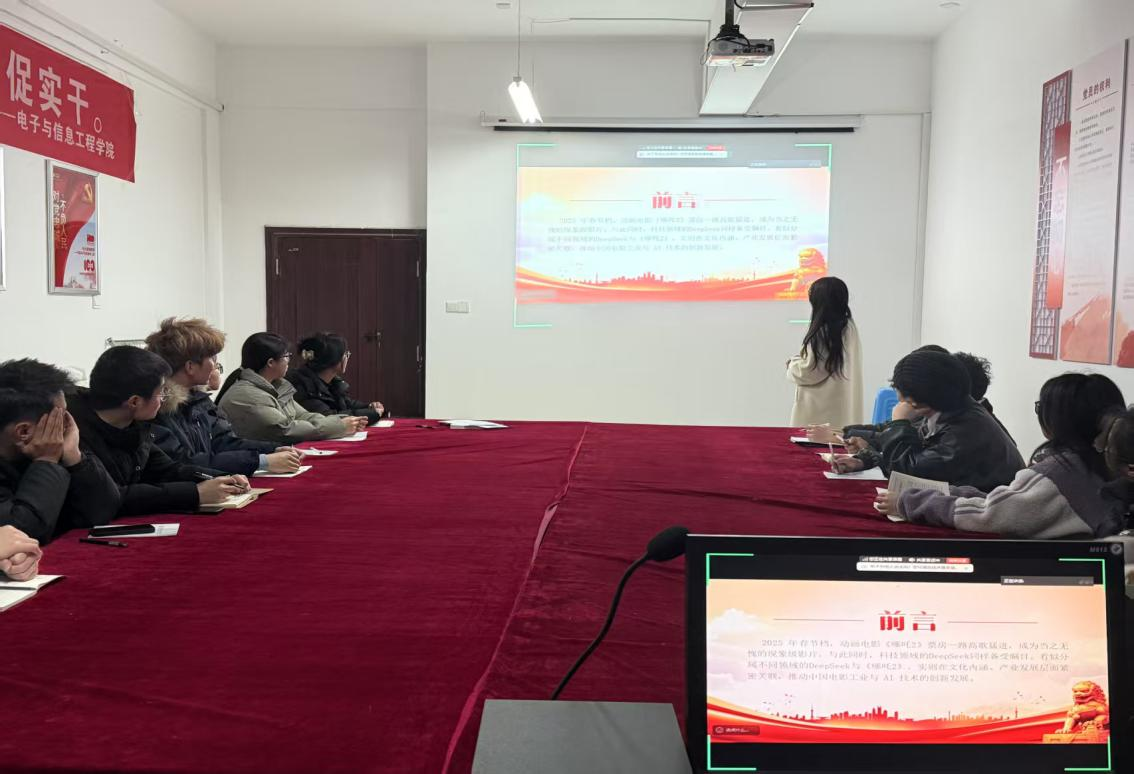 为持续深化改革开放的伟大实践,深入探索文化与科技的交融魅力,进一步增强文化自信,积极推进中国式现代化的科技创新进程,beat365官方网站于3月7日在1407会议室进行以“哪吒2+DeepSeek”爆火彰显文化自信和科技创新的专题党课,本次专题党课由学院第二党支部书记程明珠讲授。