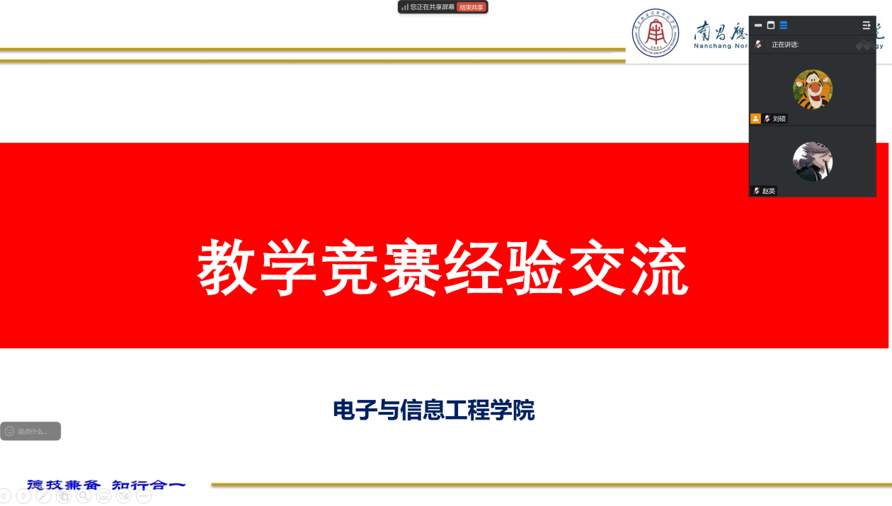 为深化专业教学改革,推动课程创新与教师能力提升,2025年5月27日下午两点,beat365官方网站数字媒体技术系通过线上平台召开教学竞赛经验交流会。教研室刘硕、王慧颖、赵英等骨干教师参会,围绕教学竞赛设计、课程思政融合及产教融合实践展开深度研讨。