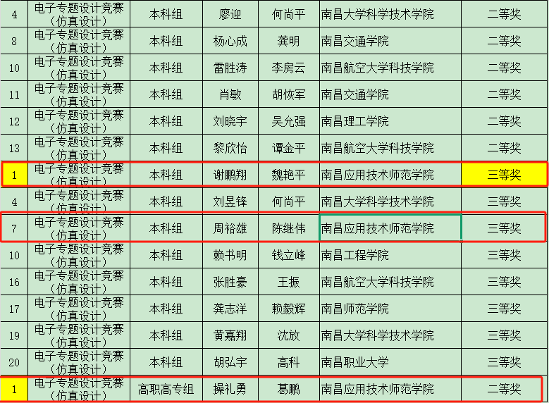 5月17日-5月18日,beat365文天宇、叶程、操礼勇等14名学子在陈继伟、魏艳平、韩玉文、葛鹏等教师的带领下,参加由江西省高等教育学会主办,南昌航空大学科技学院和吉安职业技术学院联合承办的2025年江西省大学生科技创新竞赛电子专题设计赛现场制作赛和仿真设计赛。
