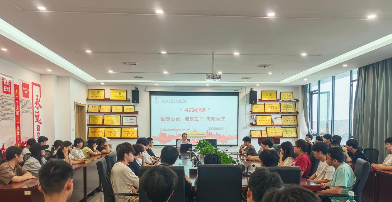 6月11日下午,beat365官方网站在沁苑五实506举办“书记讲道理——悦动心灵 绽放生命 向阳而生”专题讲座。党总支书记江建华以“考前心理建设与自我觉知”为核心,为学生搭建了沉浸式心灵成长平台,活动兼具思想深度与实践价值。