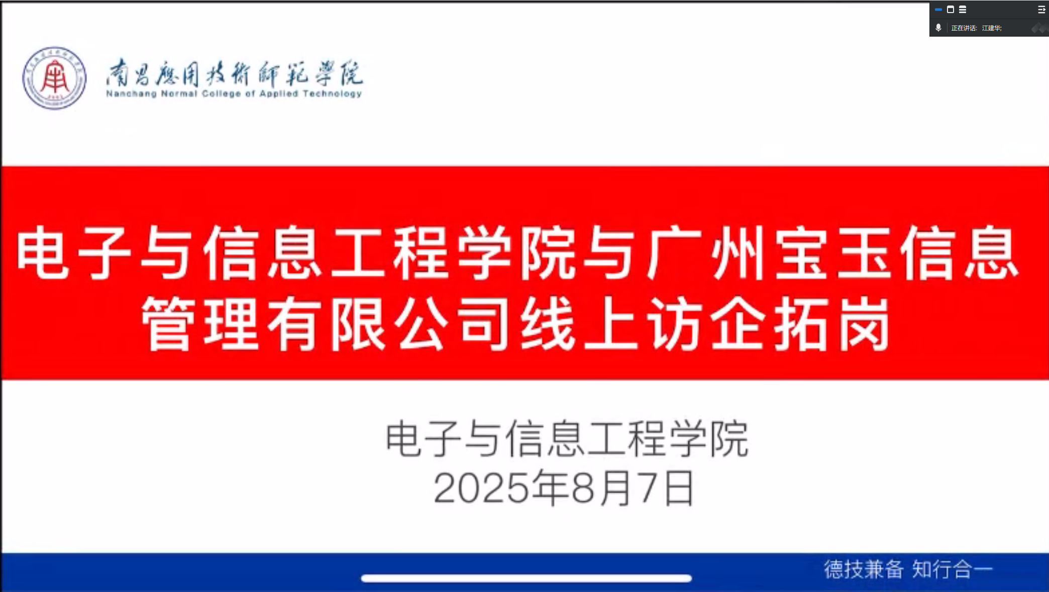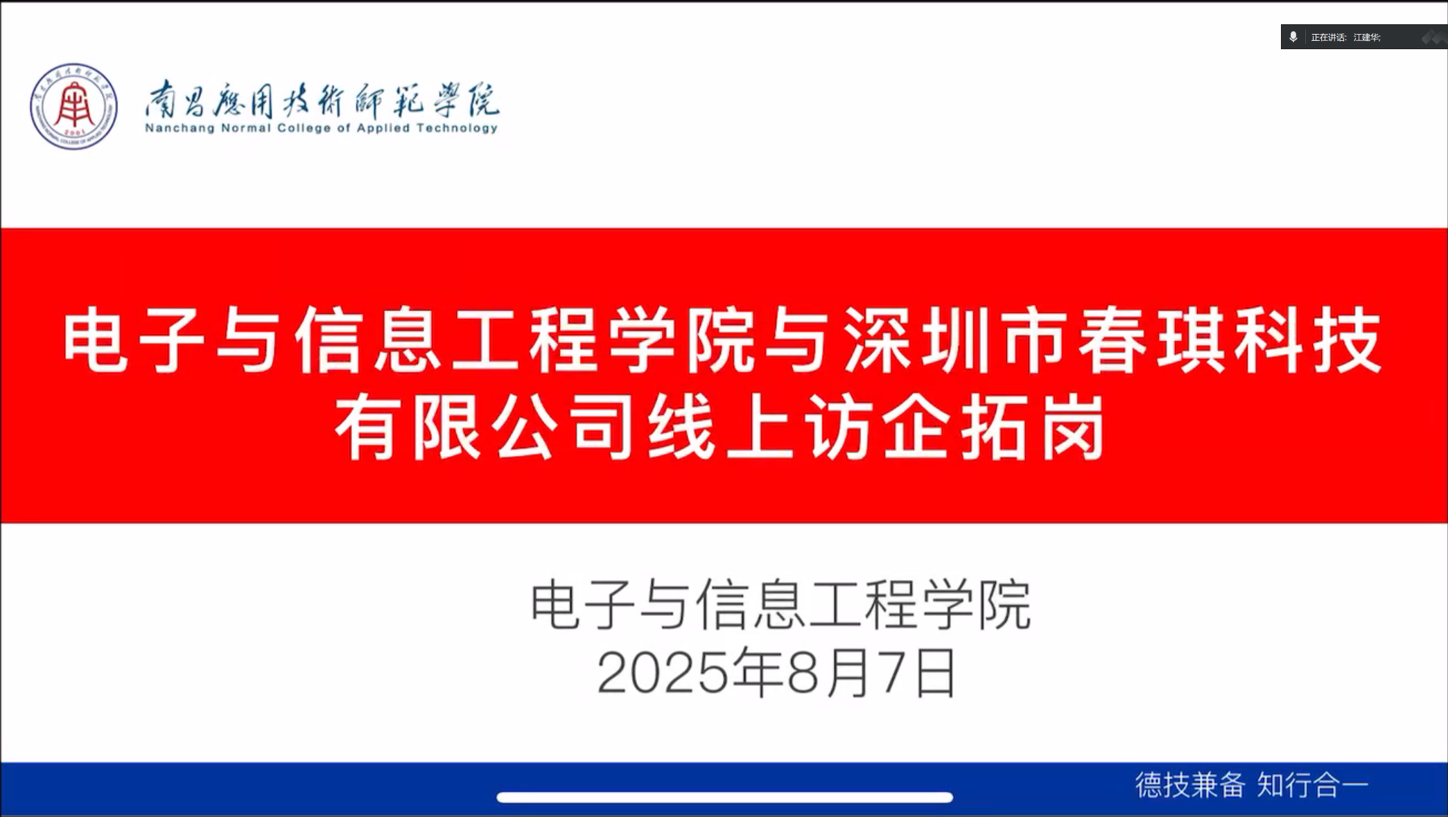 为促进校企合作,加强与企业的合作交流,为学生拓展更多实习就业机会,近日,电子与信息工程学院党总支书记江建华在腾讯会议与多家公司开展访企拓岗活动,旨在加强学院与企业的沟通联系,了解行业发展趋势与人才需求,为学生拓展更多实习就业机会,推动校企合作向纵深发展。
