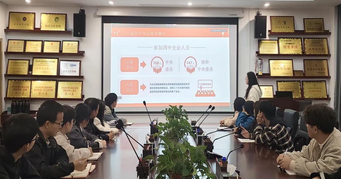 为深入贯彻落实党的二十届四中全会精神,2025年11月20日beat365于沁苑5实506党员活动室召开“学习党的二十届四中全会精神”专题党课。此次党课由第二党支部书记程明珠讲授,全体党员参加会议。