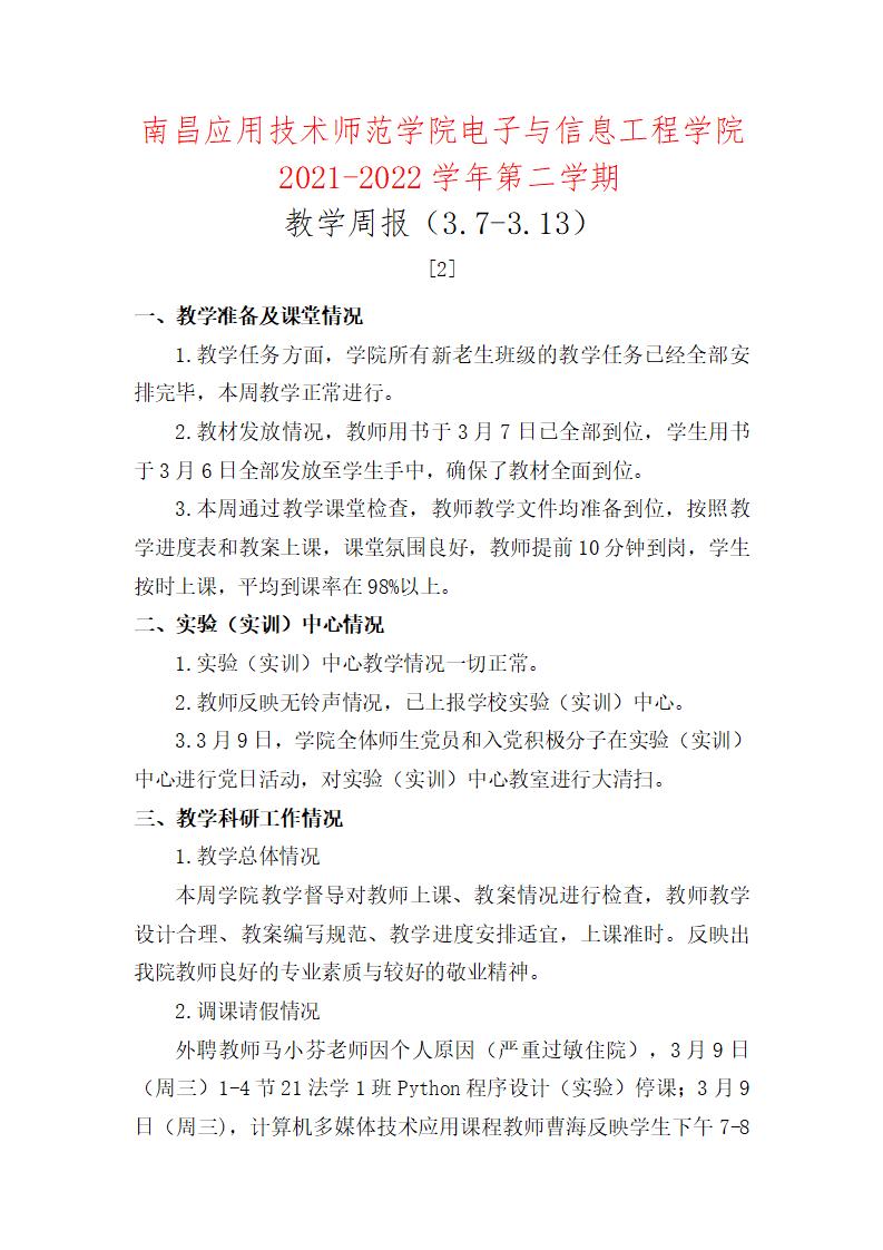 首页栏目 学院新闻 学院公告 学生工作 您现在的位置是:首页 > 首页栏目 > 学院公告 学院2021-2022学年第二学期教学周报【2】号 管理员2022-03-14763 上一篇 学院2021-2022学年第二学期教学周报【1】号 下一篇 关于拟将李亚琳等7位同志转为正式党员的公示