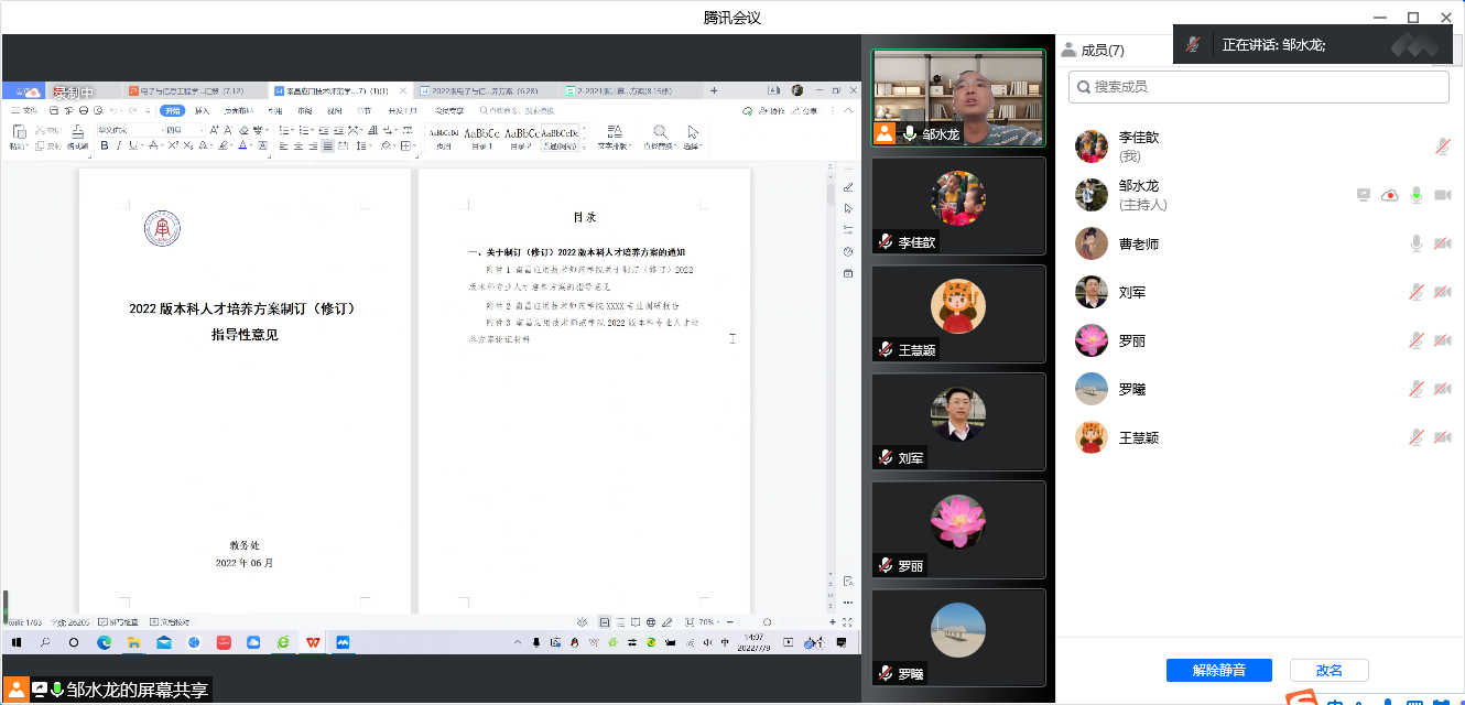 为进一步做好2022版人才培养方案的制(修)订及新专业申报工作,7月9日,beat365官方网站利用腾讯会议,召开2022版人才培养方案制(修)订暨新专业申报推进会,学院教学管理人员、各专业负责人参加了此次会议,会议由院长邹水龙主持。